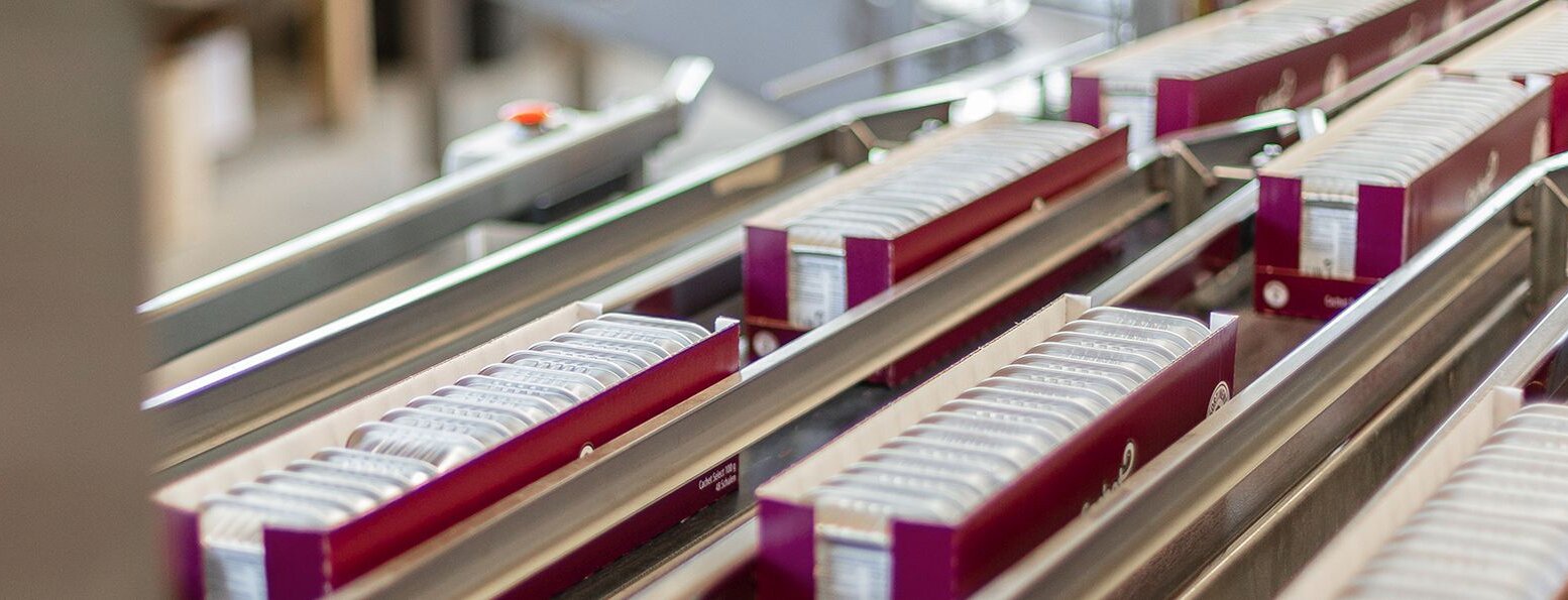 Hunde- und Katzenfutter des Herstellers Ospelt gibt es in zahlreichen Sorten. Bevor die beliebte Tiernahrung jedoch europaweit bei Händlern im Regal steht, legen die Produkte einen Zwischenstopp bei Noerpel ein. Hier stellen die Mitarbeiterinnen und Mitarbeiter vom Packaging-Team die Futtersorten zu händlerspezifischen Verkaufssortimenten zusammen.